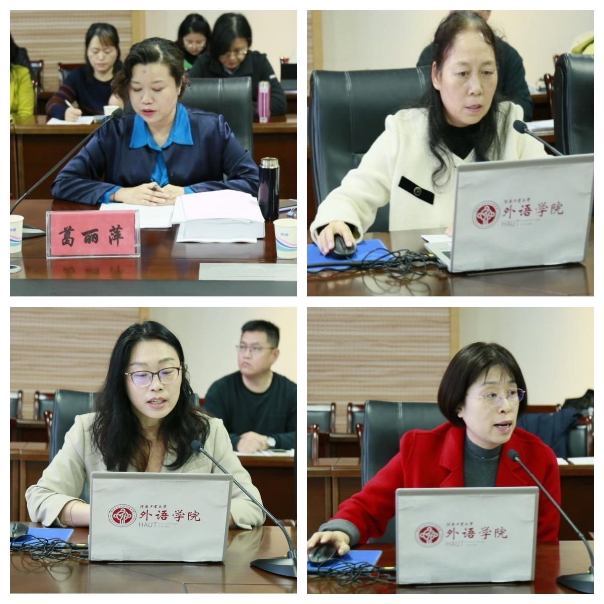 汇报结束后,会议进入核心论证阶段。为提高论证效率与针对性,专家与参会教师分为两组同步开展研讨:第一组聚焦“英语专业+大学英语(1组)”课程教学大纲,第二组围绕“翻译专业+大学英语(2组)”课程教学大纲展开论证。两组专家结合自身丰富的教学与科研经验,从课程体系的科学性、系统性、可行性及与人才培养目标的契合度等方面进行了深入审视,既充分肯定了大纲修订的亮点与创新,也针对信息化教学手段、教学资源建设、跨学科融合、考核评价体系完善等方面提出了富有建设性的意见与建议。参会教师认真聆听、详细记录,并积极与专家交流探讨。
