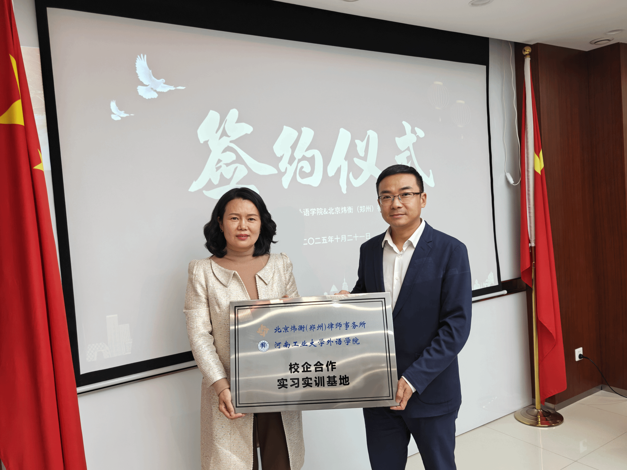 深化校企合作、推进高素质复合型外语人才培养的重要举措,也是炜衡郑州所拓展人才储备、布局跨境业务的关键一步。未来,双方将以校企合作基地为依托,在学生实习、项目合作、职业指导等多个领域持续探索合作新模式,为推动企业出海业务发展、培养高素质涉外法治外语人才贡献力量。(撰稿:洪霞 摄影:洪霞 审校:王晓东 审核:王云涛 黄辉辉)