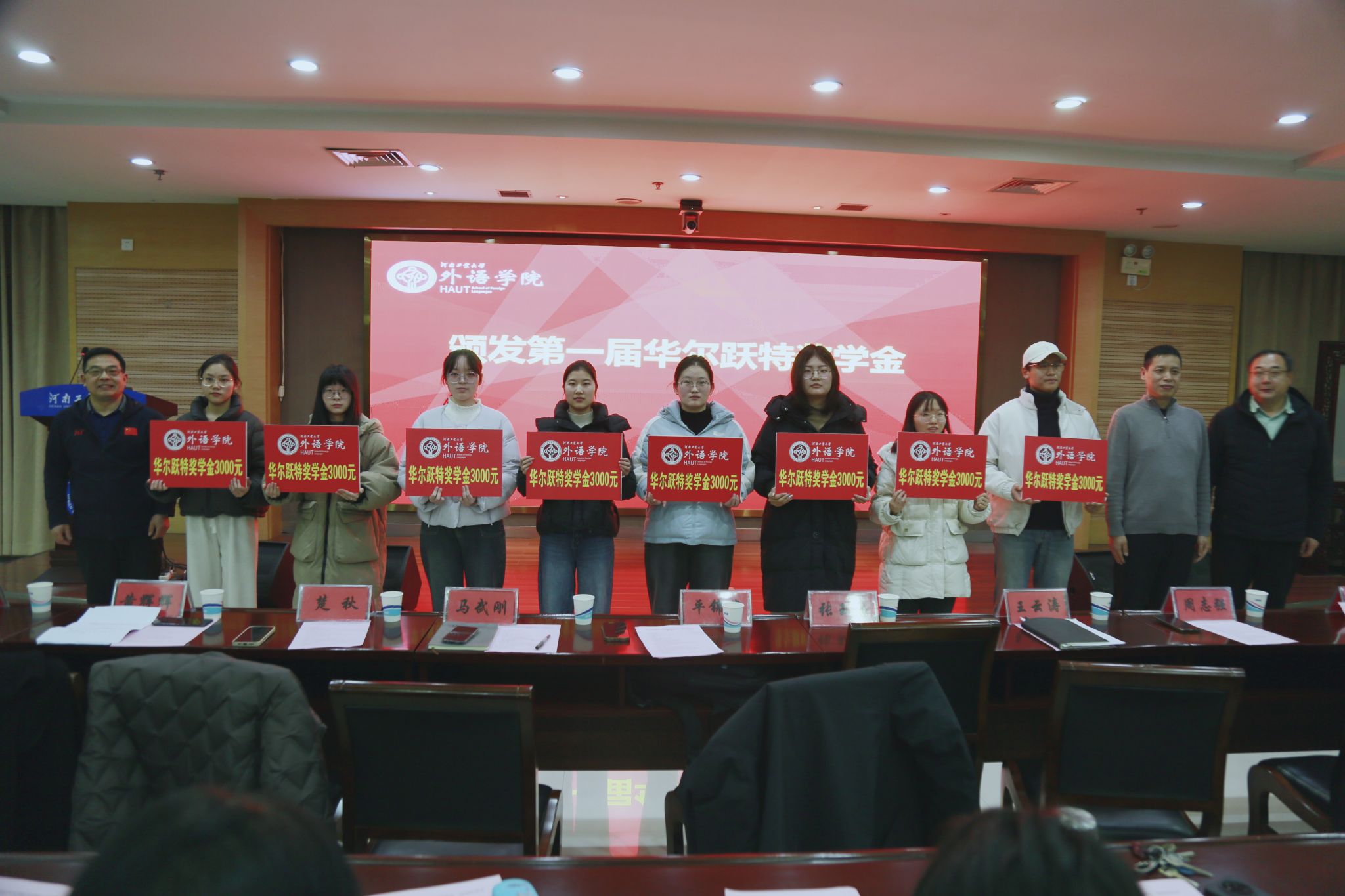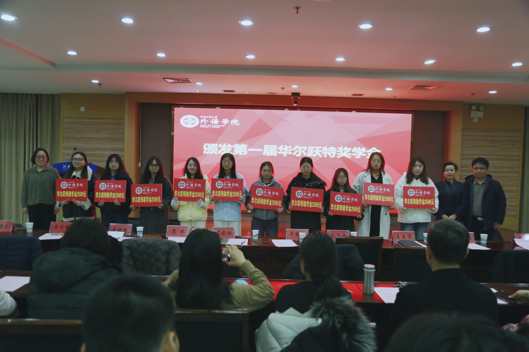 “华尔跃特奖助学金”捐赠设置暨第一届颁发仪式在莲花街校区学术交流中心D102会议室举行。校纪委书记、监察专员张玉安出席会议并致辞,宁波华尔跃特剃须刀有限公司创始人平锦华、楚秋,校友与基金工作办公室主任马武刚、就业创业中心主任周志强、国产av领导班子以及师生代表参加活动。签约仪式由国产av党委副书记王晓东主持。